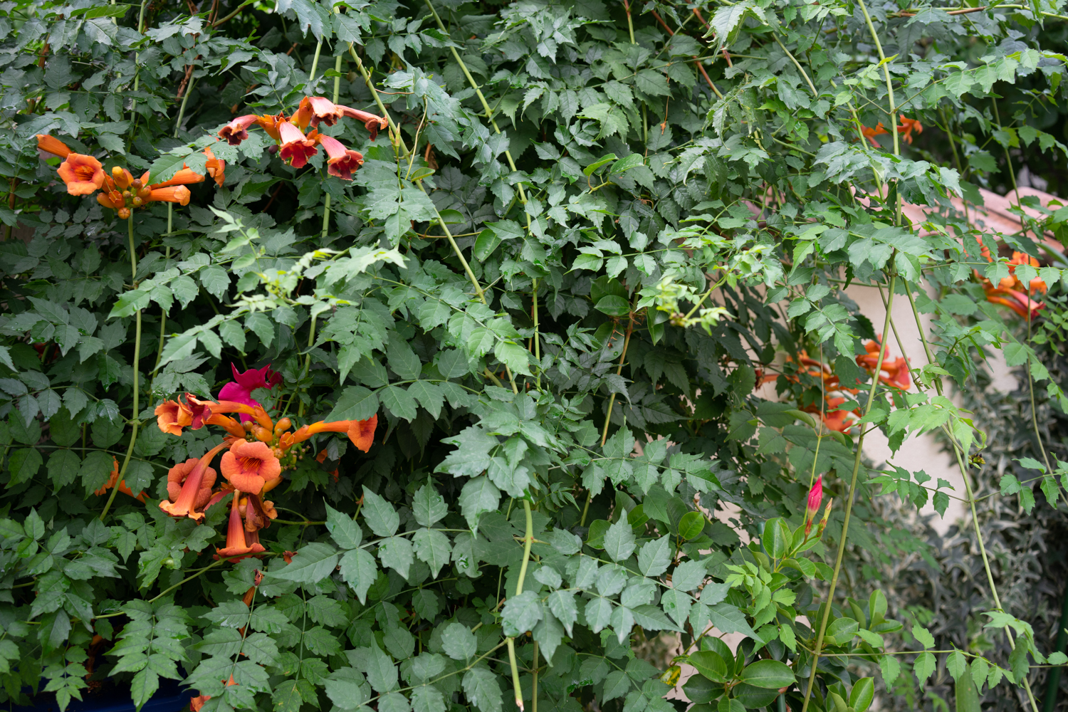 2022_ Oltenia, Romania_stock photo, flowers Campsis Mme Gallen