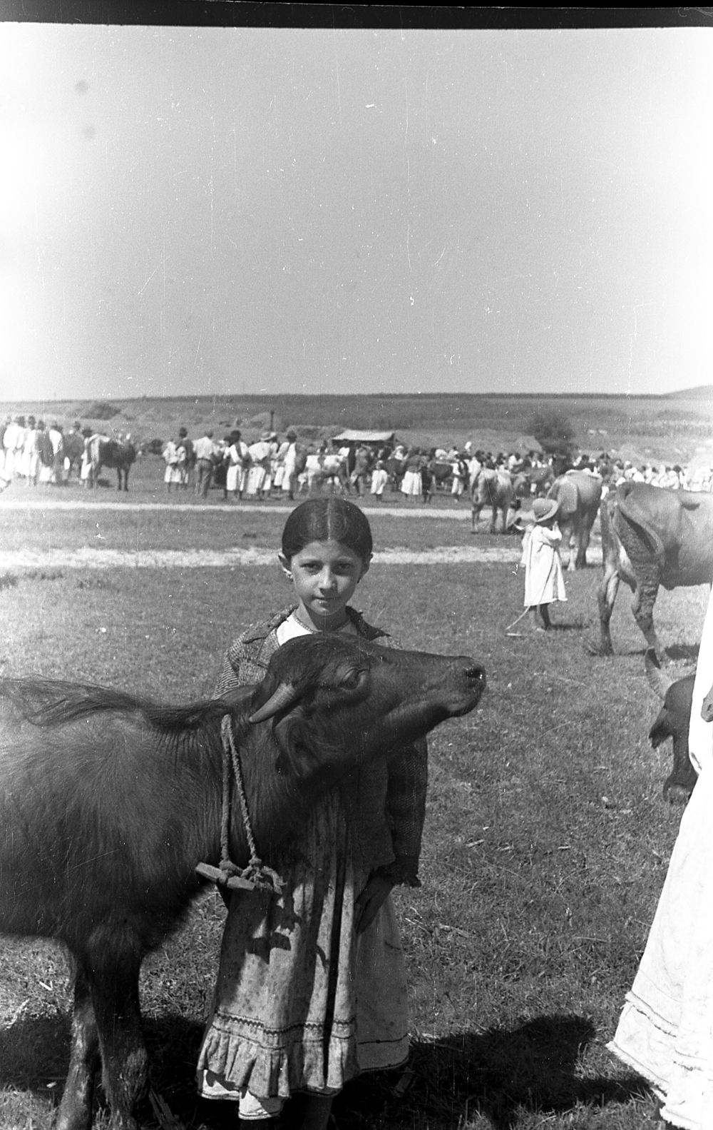 [eng]: Digitized object: 35mm b&w negative, Romania, Maramures, Negresti, 1960, ethnography, rural scene, youg girl with a cow;